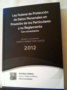 Pongo a su consideración la primera edición de la Ley Federal de Protección de Datos personales en posesión de los particulares y su reglamento, con los comentarios de un servidor, editada por Porrúa.