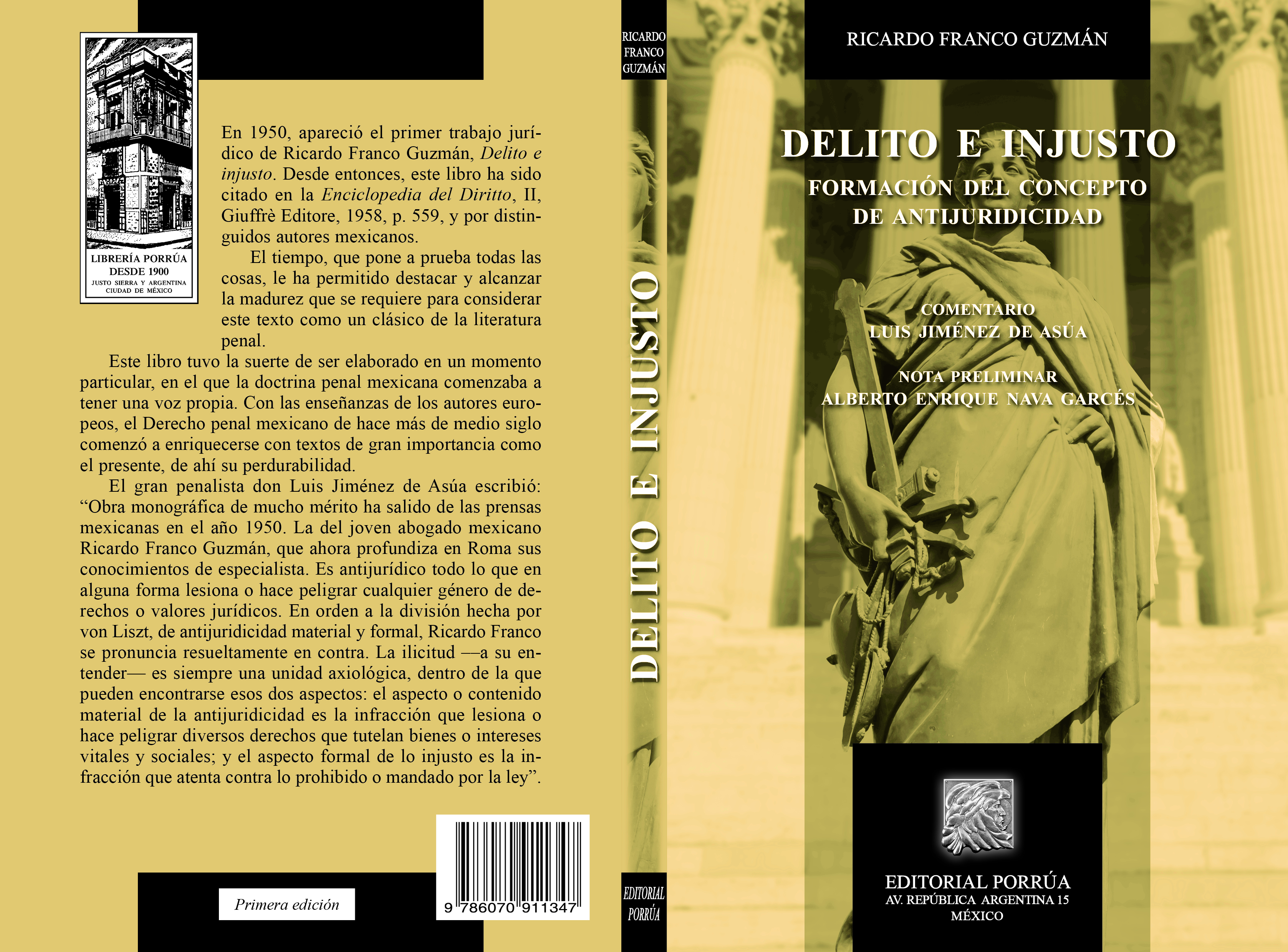 Tengo el gusto de anunciar la reciente aparición del  libro que publicara el maestro Ricardo Franco Guzmán en 1950 y que desde su aparición y hasta nuestros días es un clásico del Derecho Penal, como se sabe, el perfeccionismo del maestro y su humildad respecto al ámbito bibliográfico le hicieron guardar esta obra que es más que vigente.
