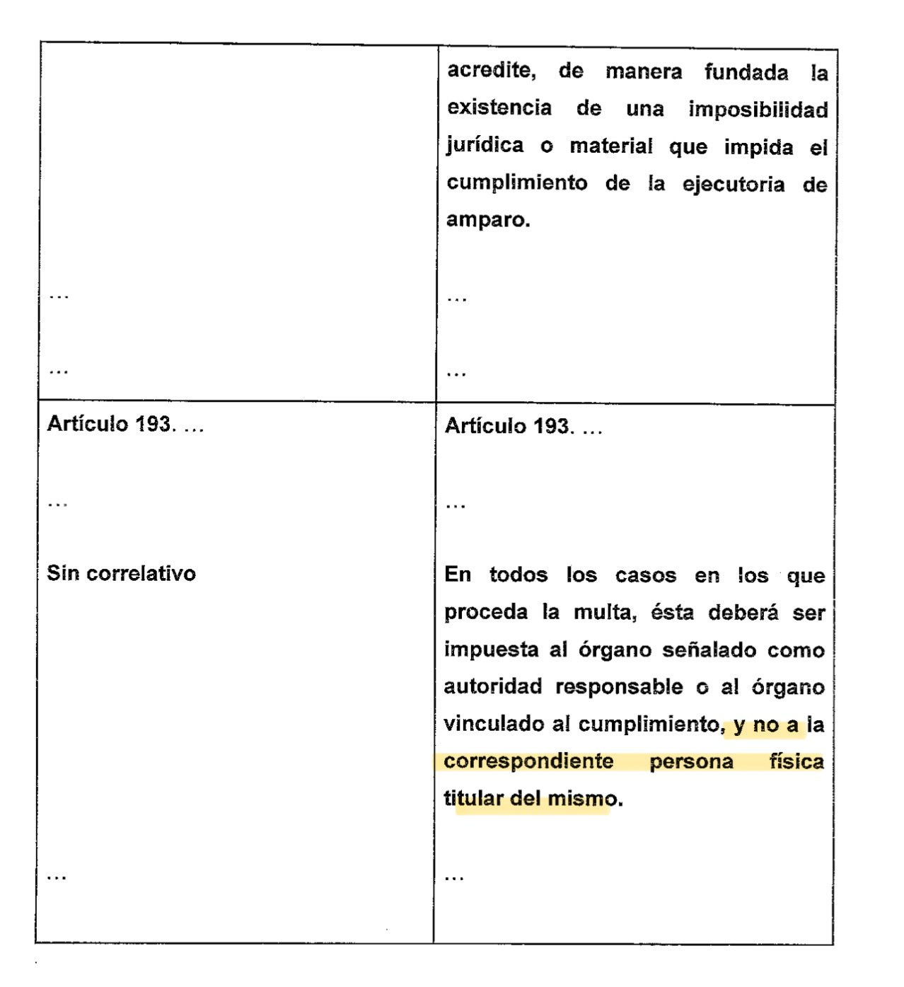 [9] Jorge Nader, escribe lo siguiente: “preocupa tanto que la reciente iniciativa de reformas a la Ley de Amparo introduzca un elemento que puede vaciar de contenido ese escudo: permitir que las autoridades aleguen “imposibilidad material o jurídica” para incumplir las sentencias.