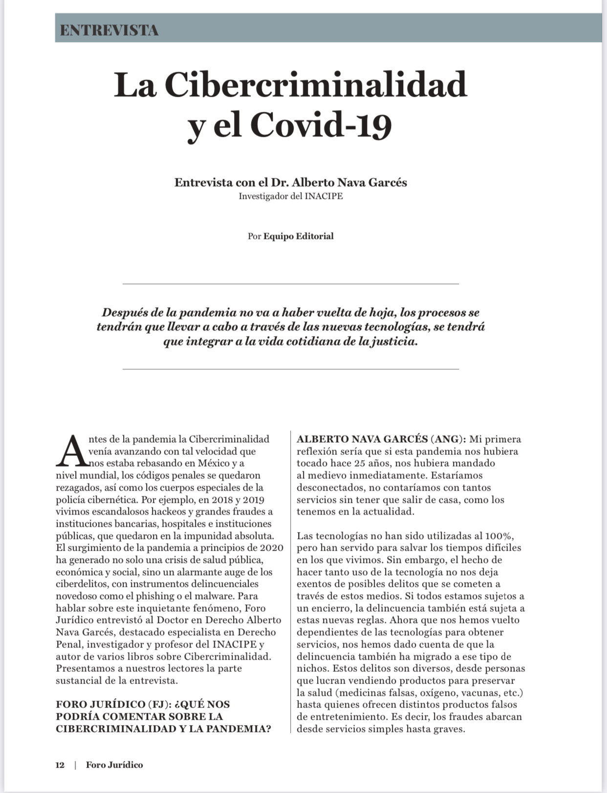 [1] Una parte del presente artículo es parte del libro Casos Penales, INACIPE, en prensa.
