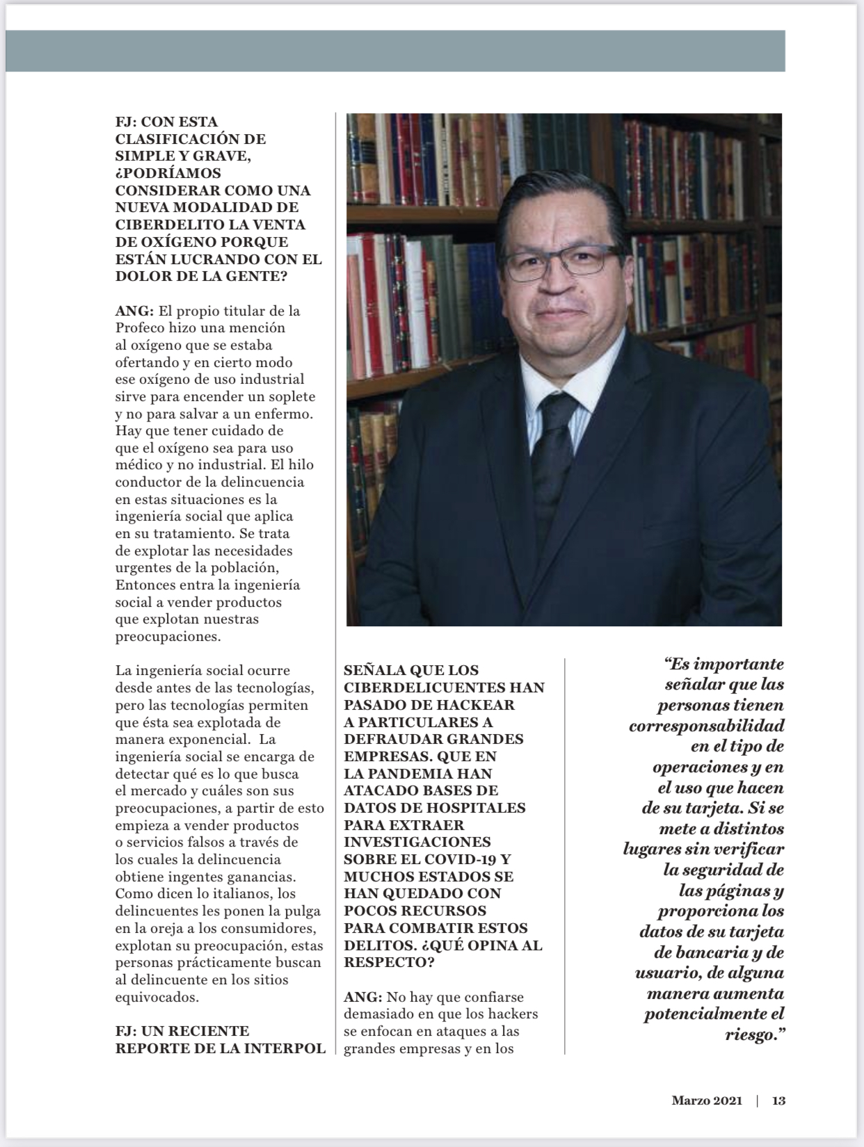 [6] La ciberseguridad como bien jurídico protegido “Las característica del Ciberespacio, hace que la seguridad cibernética juegue un papel central en su aplicación en el contexto de un Estado de Derecho, así como en el juego de relaciones internacionales, llegando a ser una constante, presente, de una u otra forma, en todos los intereses en juego del nuevo ámbito relacional cibernético. Esta omnipresencia de las relaciones cibernéticas, en todos sus aspectos, técnicos, sociológicos, jurídicos, económicos y políticos, hace emerger al Ciberespacio –y las relaciones electrónicas que lo sustentan- como un nuevo valor, un nuevo bien jurídico digno de protección –barrera de protección jurídica anticipada- , de carácter universal, que deberá servir para configurar nuevos tipos penales, con independencia de los ya existentes y, entre los que destaca por su importancia para hacer viable el bien principal, la seguridad cibernética y el derecho al uso seguro de Internet. La seguridad cibernética como garante de un estándar de seguridad colectiva en el ámbito relacional constituido por el Ciberespacio, es un área de confluencia de intereses de la más variada índole (públicos y privados, estatales, comerciales, industriales, individuales, sociales, militares, de inteligencia o policiales). La seguridad cibernética es un bien jurídico que adquiere una dimensión institucional y supraindividual, cuyo objeto jurídico de protección inmediato es la seguridad colectiva, lo que no impide que determinados bienes jurídicos individuales constituyan un objeto inmediato de protección, en una situación valorativa en relación al bien supraindividual. Los bienes jurídicos son unidades funcionales relativas, referidos al orden social del momento, y sus objetivos. La seguridad cibernética es una entidad nueva de protección, referida a los procesos y funciones que ha de cumplir el sistema, para que estén aseguradas las bases y condiciones, esencialmente los bienes jurídicos individuales. Frente a los medios de comisión cibernéticos, de gran potencia lesiva, la seguridad cibernética tiene entidad suficiente para recibir un tratamiento autónomo como bien jurídico penalmente relevante. Como bien jurídico, junto a los intereses individuales protegidos, se puede percibir algo que transciende y que se podría definir como ‘el derecho que todos tienen para el desenvolvimiento normal de sus vidas en paz, sosiego, bienestar y tranquilidad’ (STS de 9 de octubre de 1984) en el ámbito del Ciberespacio. Por todo ello, tal vez sería conveniente establecer en el Código Penal, un tipo específico, relativo a los delitos contra la seguridad cibernéticas, en el Título relativo a los delitos contra la seguridad colectiva, que conviviría con subtipos referidos a bienes jurídicos individualizados como la libertad de expresión, la privacidad, la intimidad, el secreto de las comunicaciones, la seguridad del Estado, la prevención y persecución del delito, o los datos de carácter personal, u otros.” José María Molina Mateos http://www.abogacia.es/2014/09/15/la-ciberseguridad-como-bien-juridico-protegido/ consultado 15 de sep. de 2014 17:41